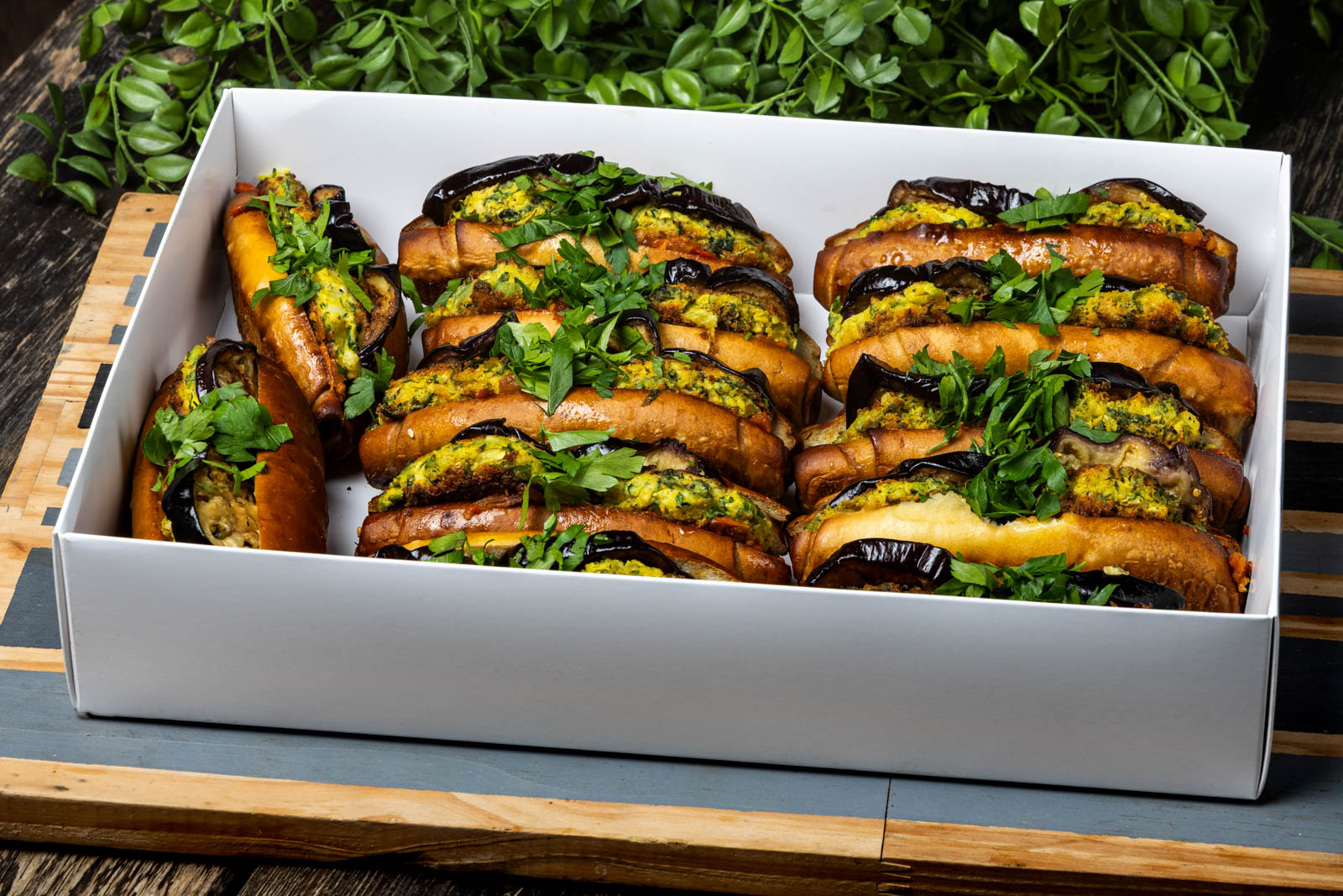 כמות של כריך פרעצל - קציצות עיג'ה, מטבוחה פלפלים, חצילים ופטרוזיליה