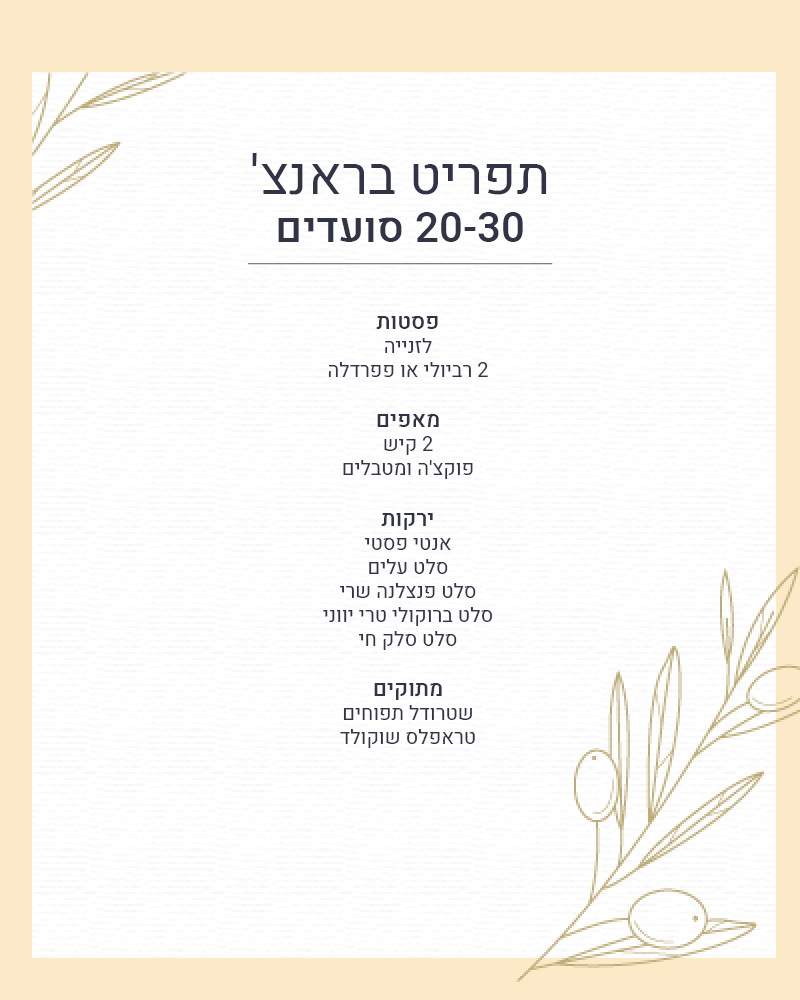 כמות של תפריט בראנצ' - 20-30 סועדים